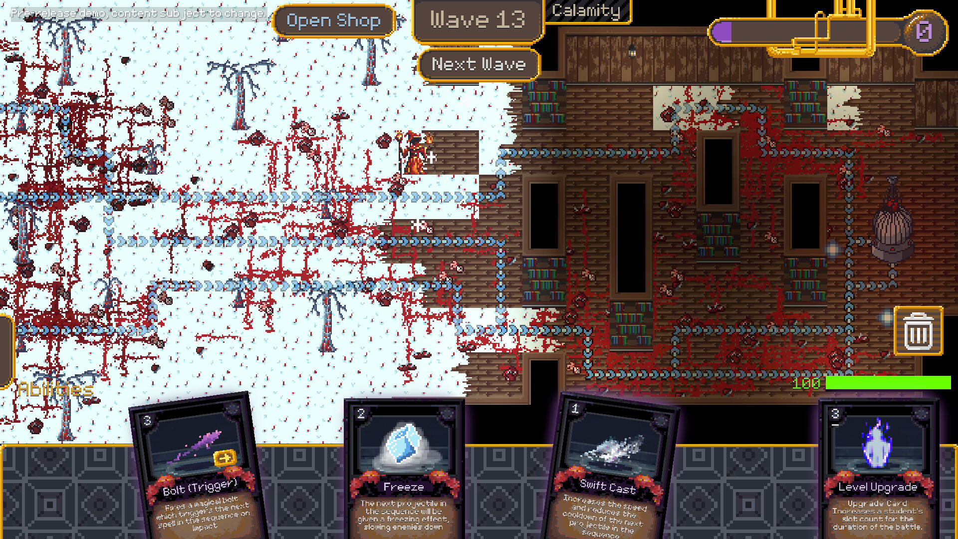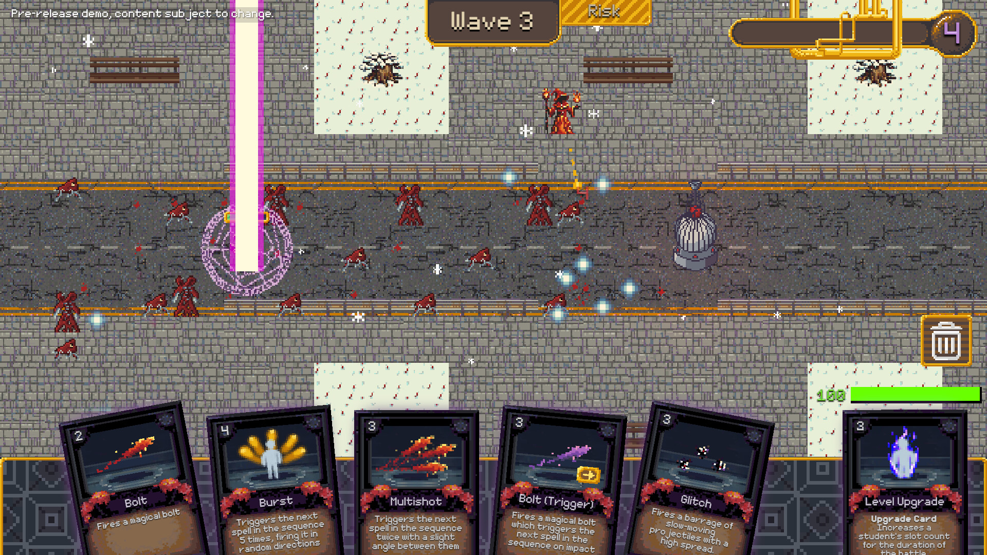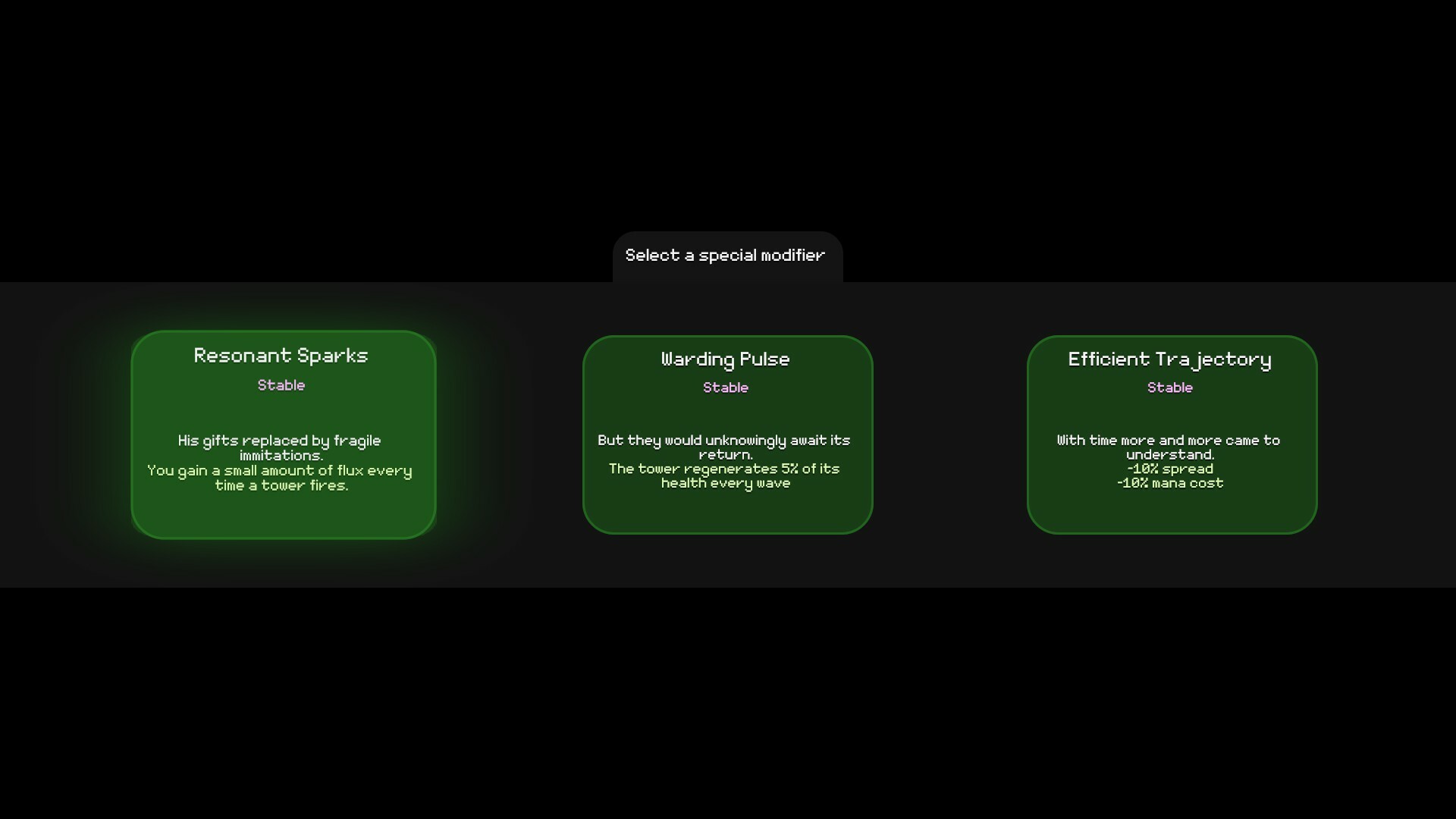A tower-defense game where you combine spells to modify the effects of your projectiles. A tower is defined by how you choose to apply modifications to it - create a shotgun wizard by combining multi-casts, create a swarm of black-holes, and absolutely break the game with your insane combinations!