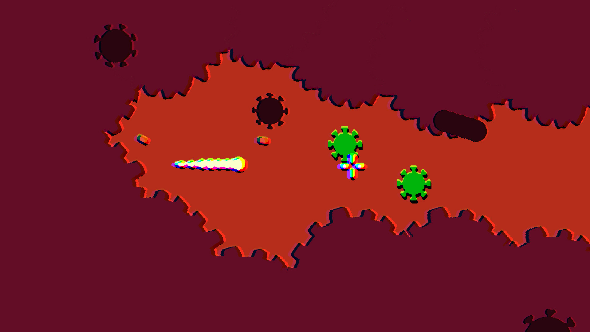 There are two ways to die in this game, touch the deadly foci of inflammation or getting infected by a virus. If you die on a level you will restart that specific level. There are no checkpoints within a level and all levels generating randomly every time, which provides a challenge and more satisfaction when you win!It's quite topical game in our current real world. So consider wearing a mask to play. And please, wash your hands after playing.