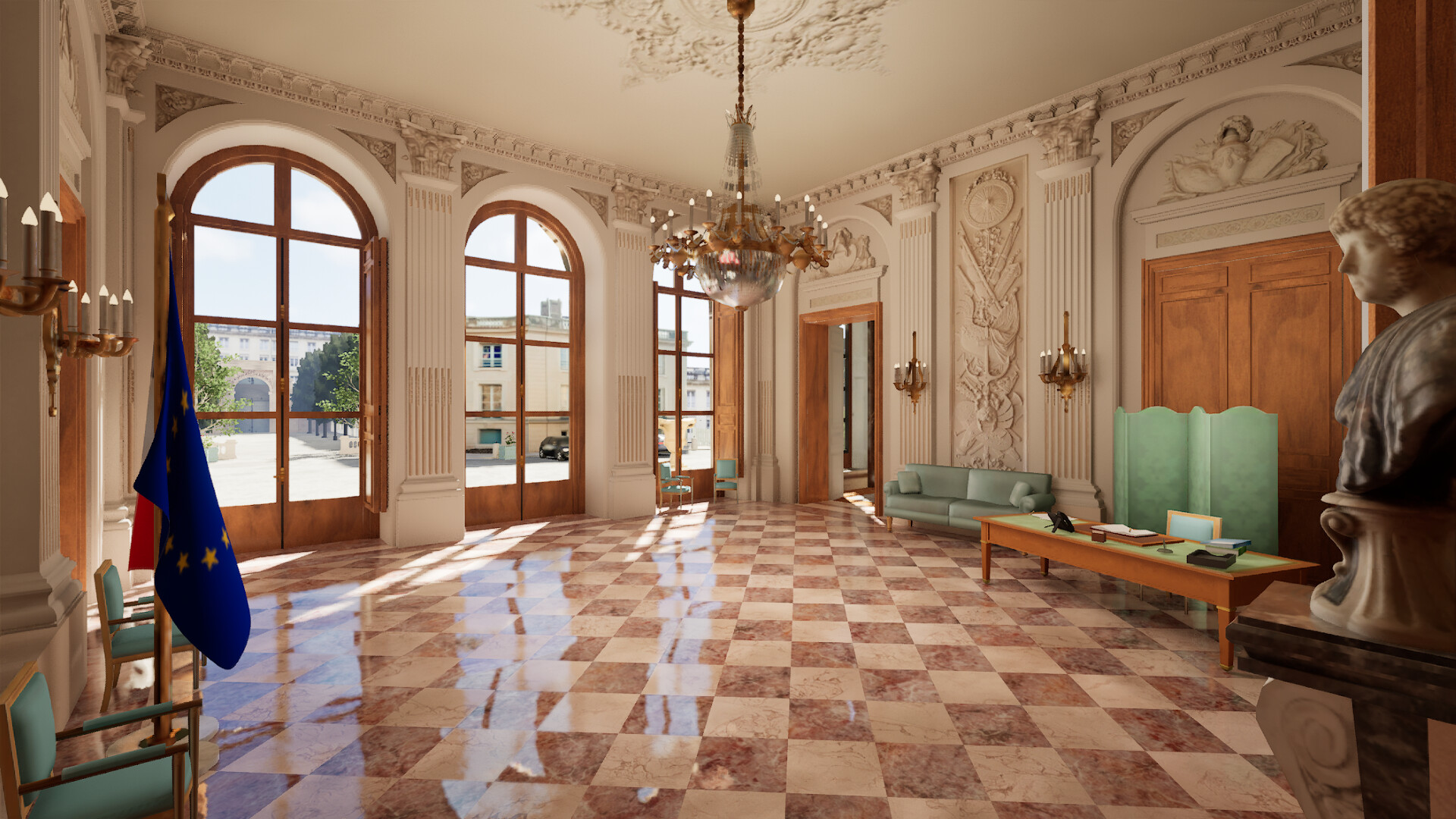 Freely explore the National Assembly and the Hôtel de Lassay using your computer, Steam Deck, or virtual reality headset, in a fully immersive experience.