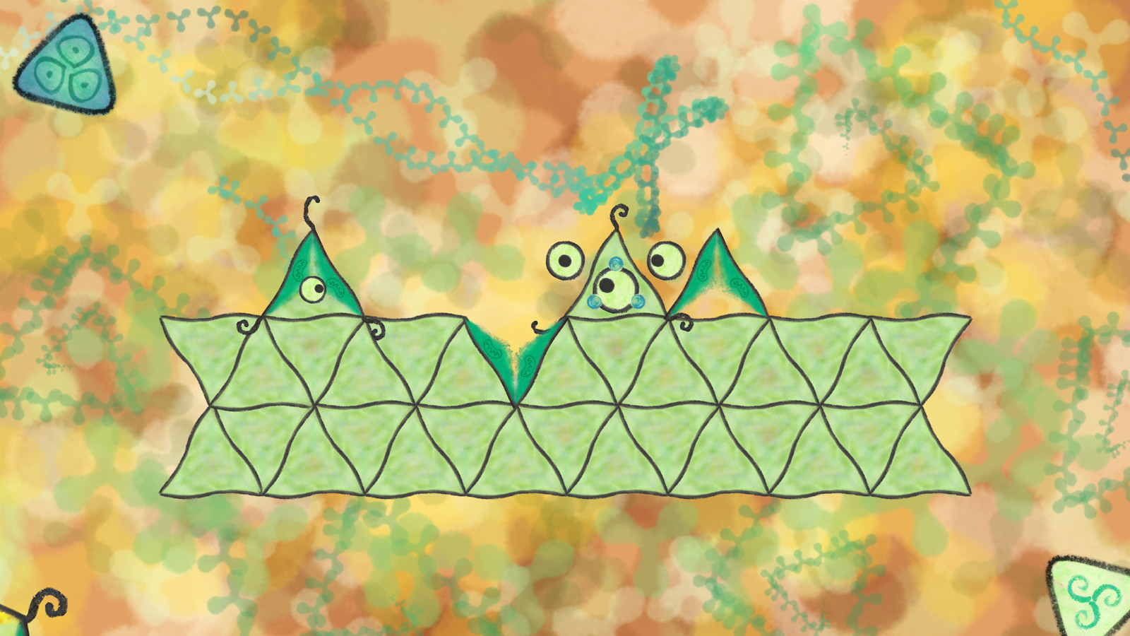 The Trimoebas are unicellular animals that populate the primordial soup and move by rolling. Their dream is to build the first multicellular creatures. To succeed in creating order from chaos, they will have to dig tunnels, build towers, and construct bridges — having no tools but their triangular bodies and their special abilities!