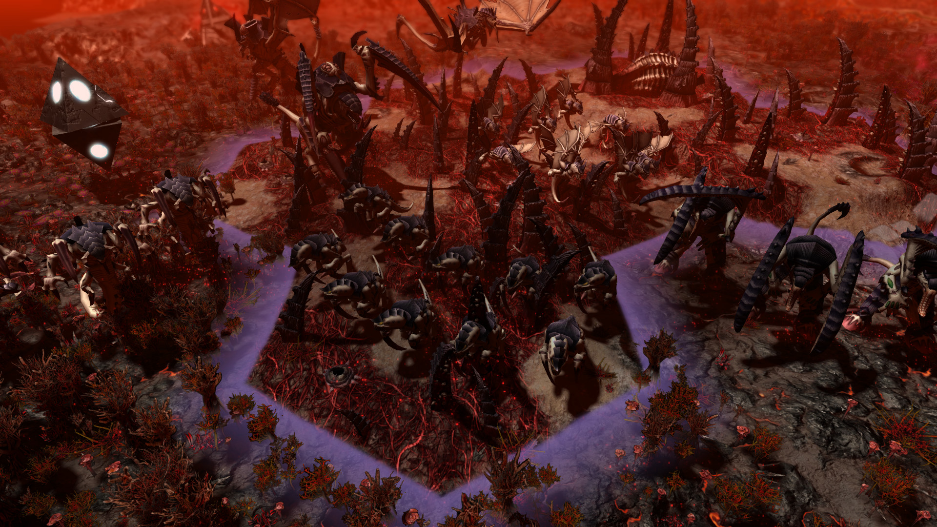 The Tyranid race travels the stars, systematically consuming anything that enables its rapid evolution and reproduction... so it may consume even more. On Gladius, the Tyranid faction specialises in reclaiming biomass from enemies, its own units and even by stripping tiles back down to the bedrock.