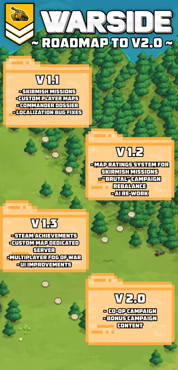 Welcome to Warside, the fast-paced turn-based tactics game. With a single-player story campaign, multiplayer support, and a built-in map editor, the fight for victory never ends. Choose your Commander, assemble your forces, and battle your way to victory.
