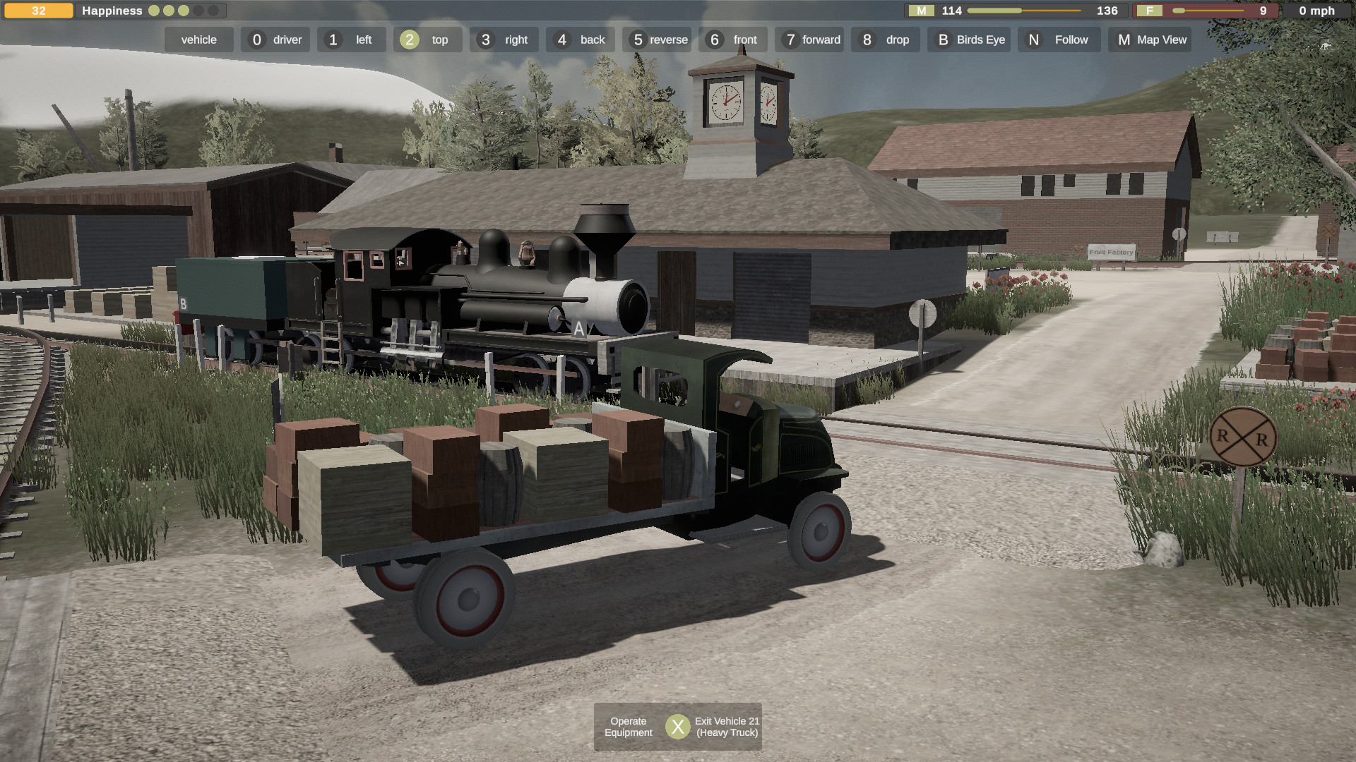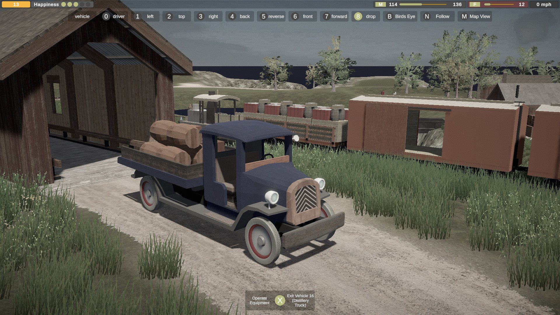 Game Play Whiskey Island is a 3D immersive environment with a first-person point of view. Explore the island on foot, drive trucks, or operate locomotives to assemble trains and switch tracks. The basic idea is to use trains and trucks to transport cargo. Pick up resource cargos from various locations around the island and deliver them to factories and mills for processing. The finished goods can then be transported to other factories or to the Seaport for final delivery.