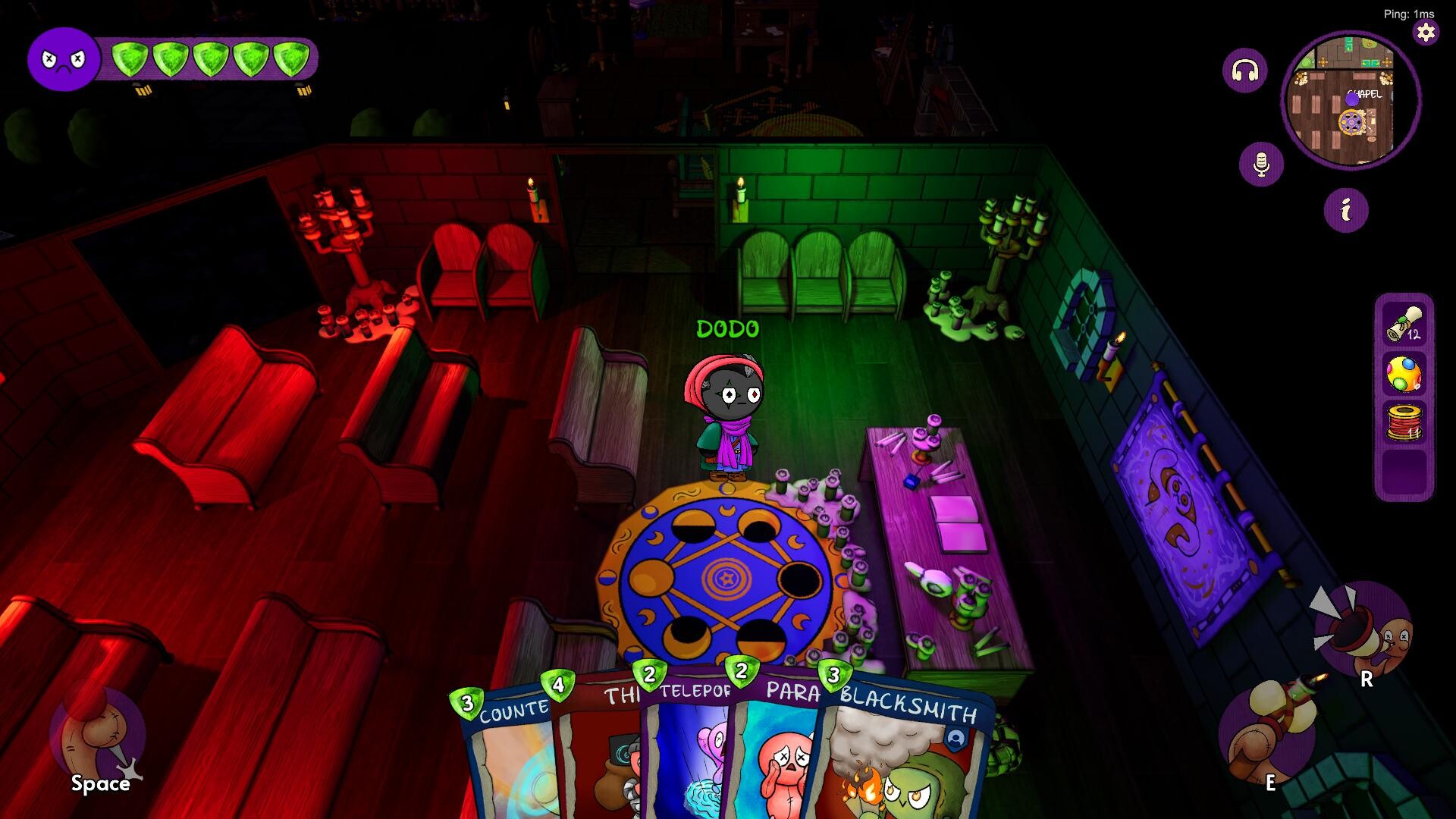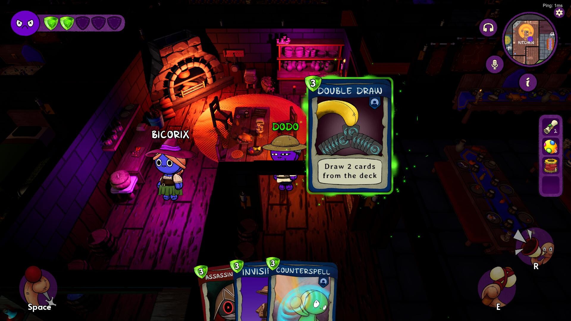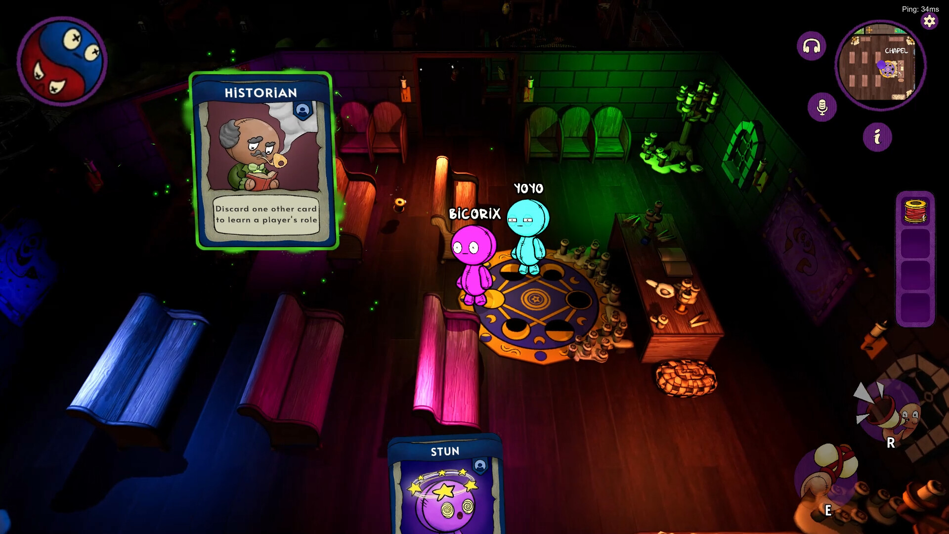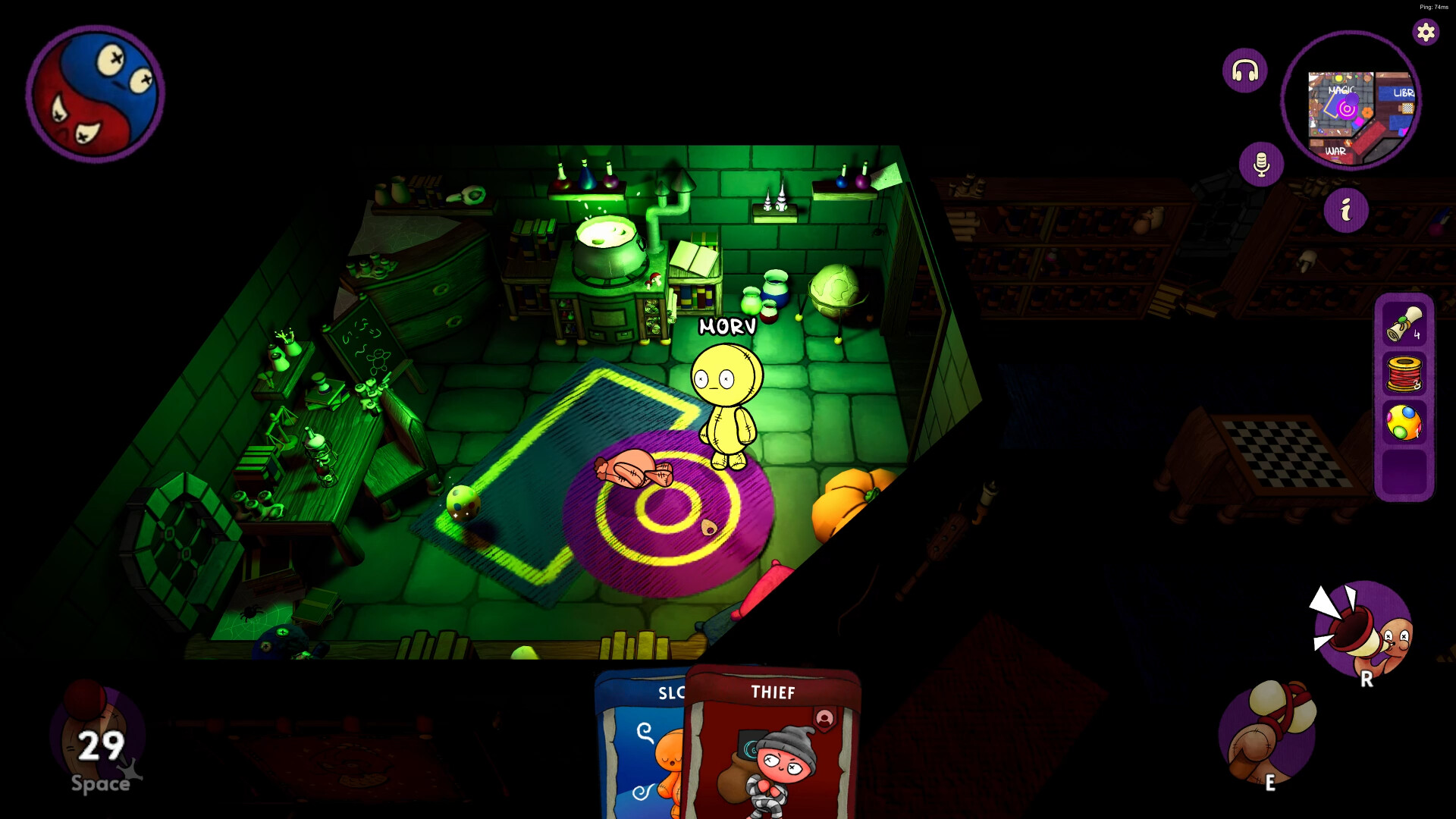 Who Do Voodoo features a unique card crafting and action system. As players move freely around the map, they gather magical materials to craft three types of cards: Good Cards to protect and investigate, Bad Cards to sabotage and attack, Fun Cards to prank and confuse.