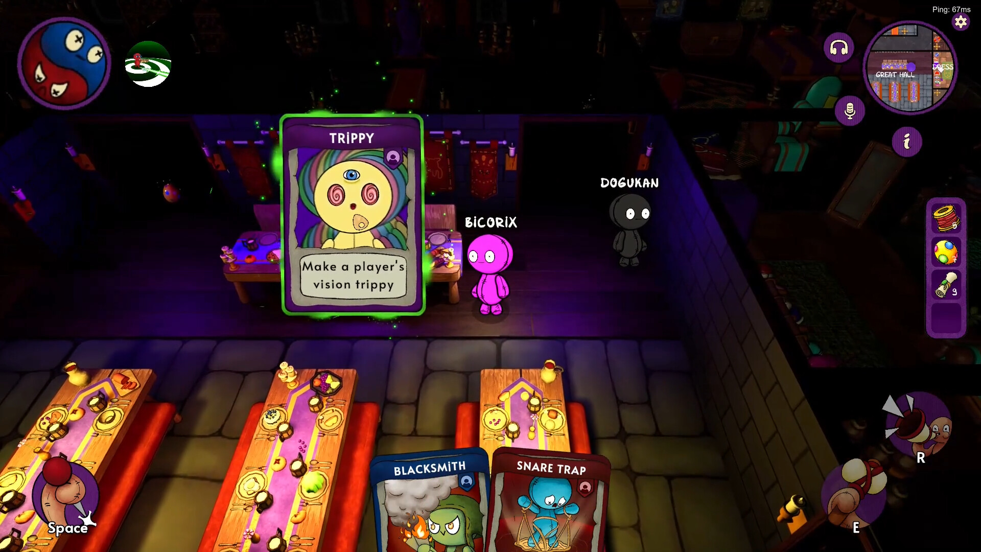 A social deduction game where crafted cards become spells. Protect allies, sabotage rivals, or prank everyone in a magical fight for survival.