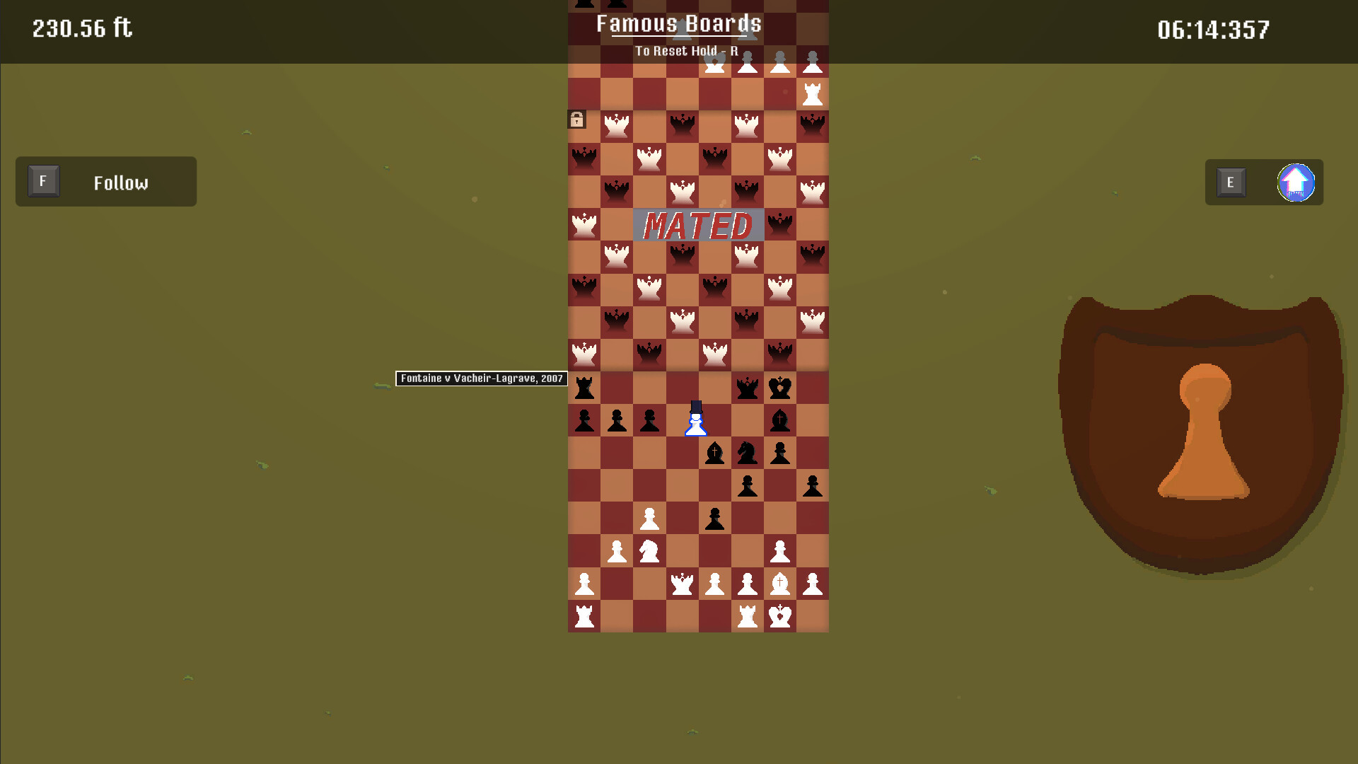 Test your brain and your brawn in the toughest chess game ever made! Play against the Stockfish chess engine to build your path and climb upward to claim the crown, but be careful! One small blunder and you risk losing your progress. Heavy is the head that wears the crown, but who will take it?