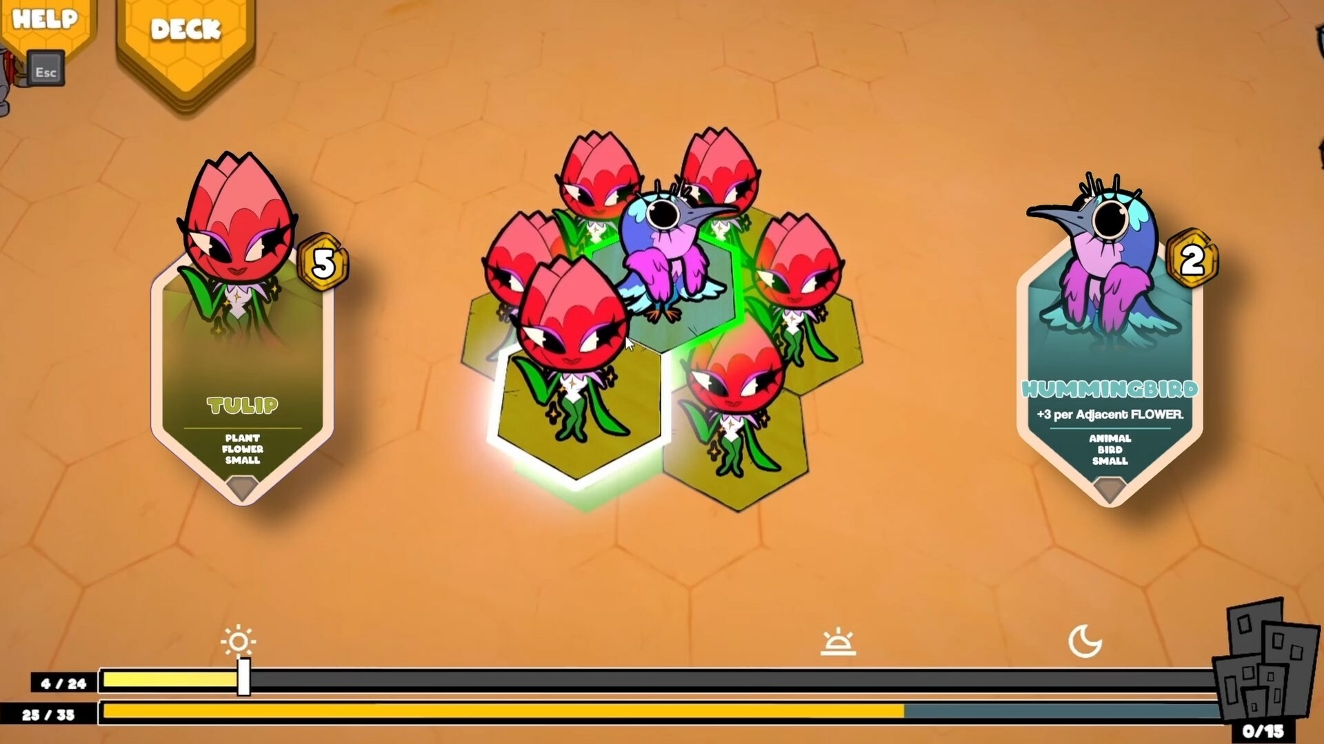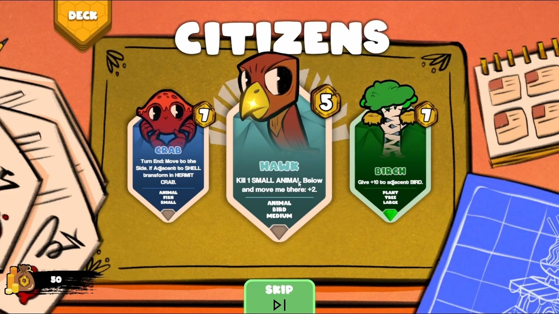 The deckbuilder where cards are plants, animals, and insects that can synergize and prey on each other. Place your cards on an expanding board to trigger satisfying chain reactions and shape an interconnected ecosystem.