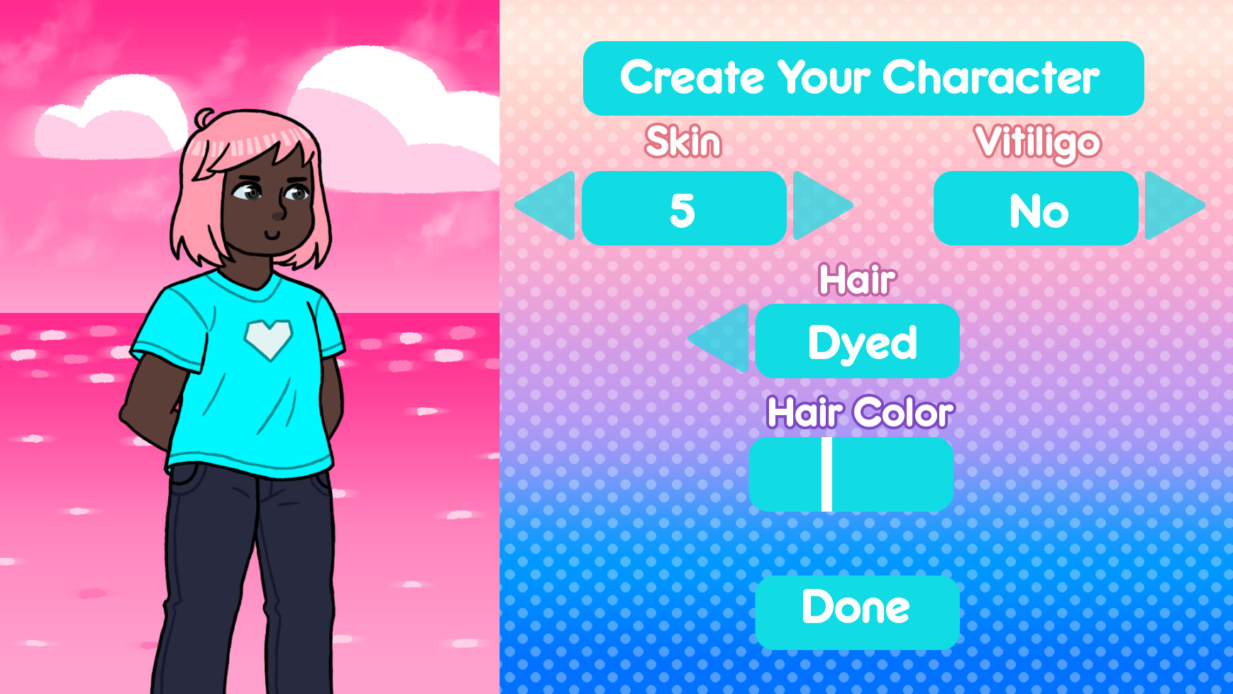 - A customizable female MC: There are over 20 skin tones to choose from and there's a vitiligo option as well! In addition to that, there are 10 natural hair colors to choose from and even more when selecting from the dyed hair color options!