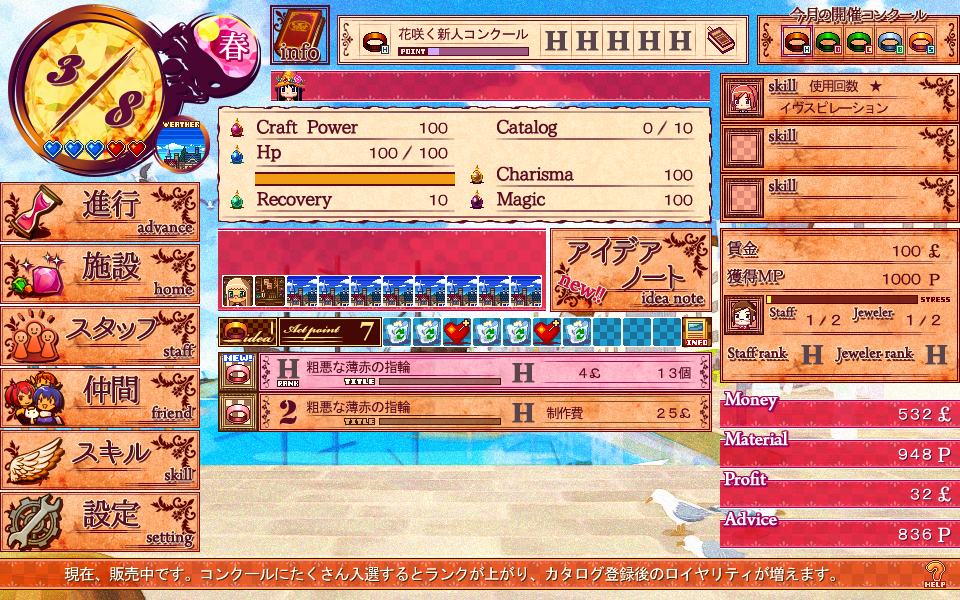 Management simulation idle game Witch Ring Meister, you'll become Marietta from the gem store, manage your store, grow with your partners, aim for the prize of "Miss Design"!