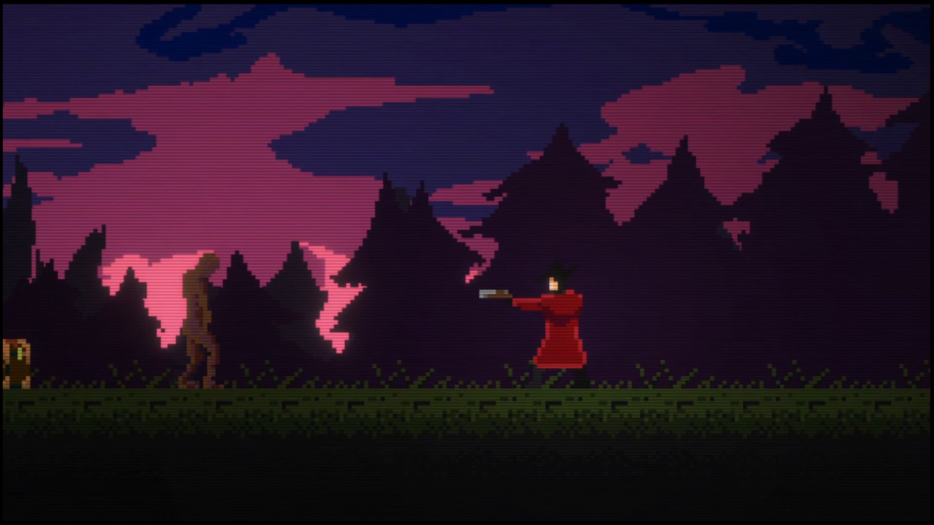 This game is completely pixel art, even down to the custom fonts used. Enemies, attacks, and effects are animated one frame at a time. Using more colors than were possible with 8 bit, but less pixel density than 16 bit, the art has a style of its own which harkens back to both eras. Plentiful parallax scrolling further draws you into the world, giving depth to the 2D scenes.