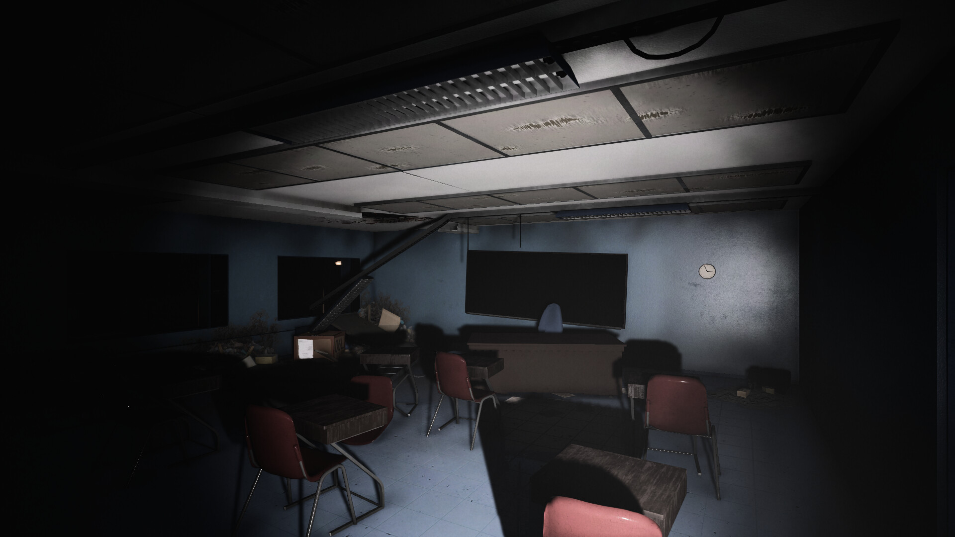 Search classrooms, offices, and ruined corridors for clues. The building itself resists you - collapsing elements, locked doors, and fragments of a story hidden in forgotten corners.