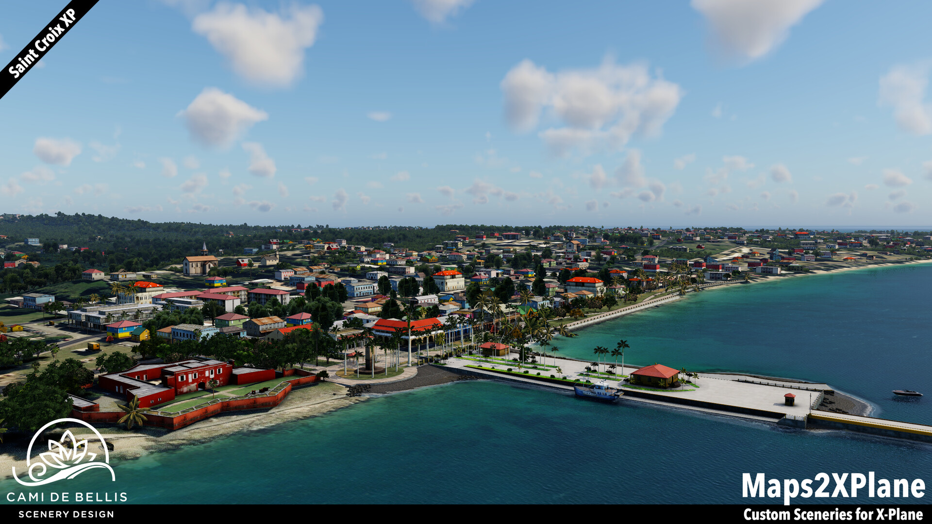 This scenery package for X-Plane features a custom photo-terrain-mesh for the entire island and surrounding islets, with custom overlays (vegetation, road-network and sea-routes with dynamic traffic, autogen buildings) and a highly detailed rendition of the international Henry E. Rohlsen Airport. Renditions of Christiansted and Frederiksted, featuring selected landmarks and including the Seaplane Base, complement the immersive scenery.