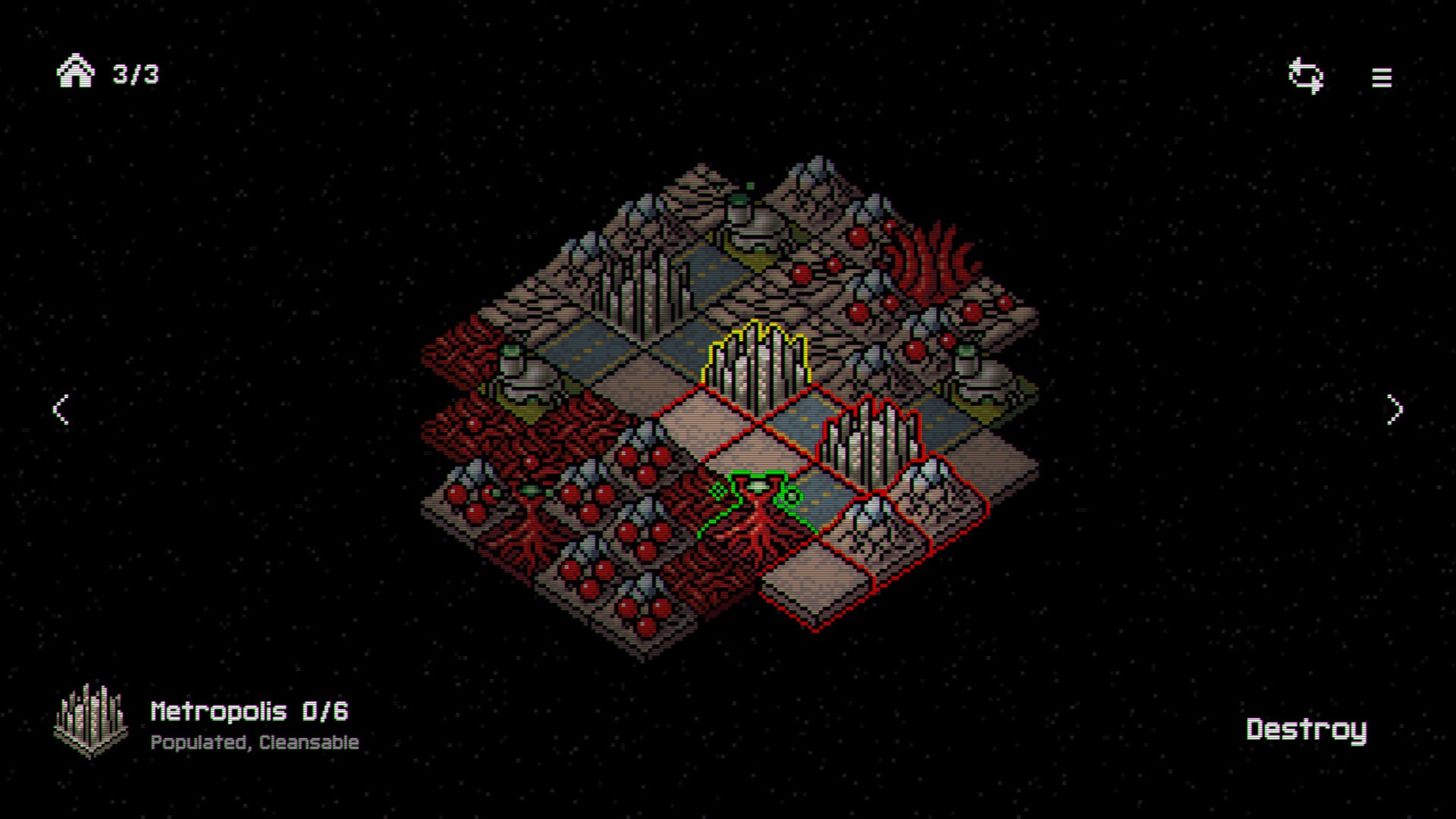 Defend humanity against a creeping alien fungus in this strategic, turn-based puzzle game. Destroy tiles to isolate the Xenospore organism and protect populations in a minimalistic yet challenging experience.