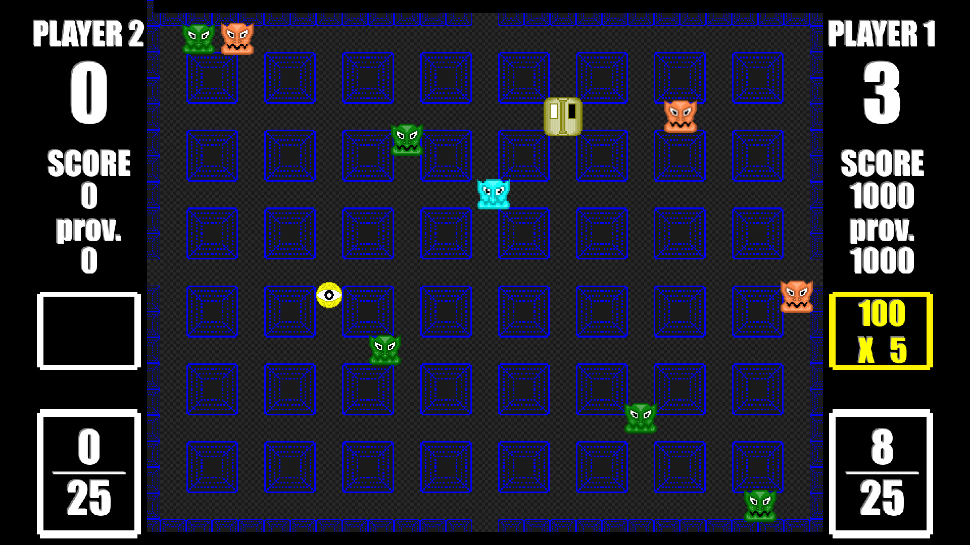 The space-eyed couple is back! This time they will use the ability to change color to fight. An arcade genre game that pays tribute to the first titles of the 80s. 1 or 2 players.