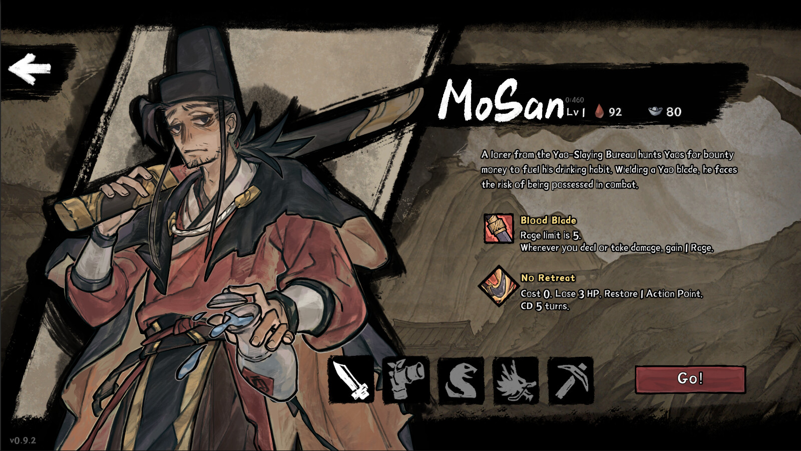 Mo San – A warrior from the Yao-Slaying Bureau, carrying a cursed blade thirsts blood.
