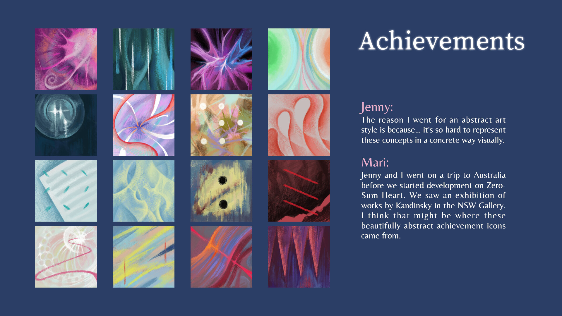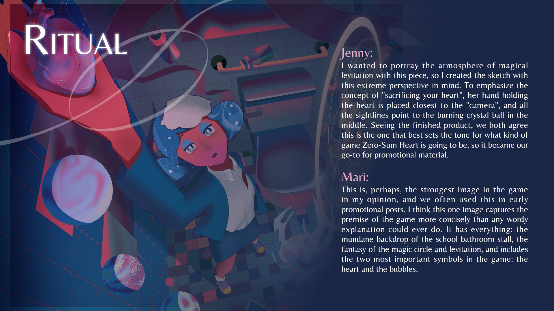 A digital artbook containing sketches, selected artwork and developer's commentary for Zero-Sum Heart.