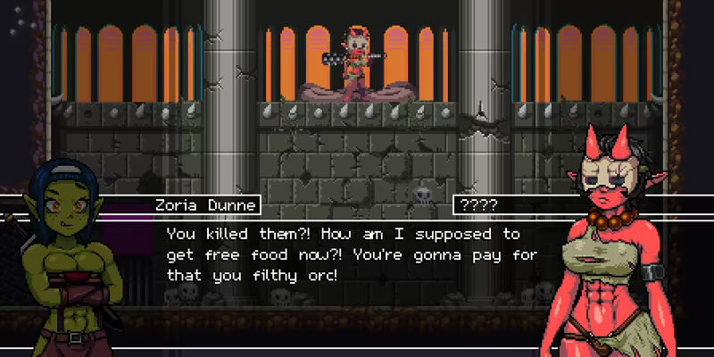 You play as Zoria Dunne, half orc adventurer (human/orc), eager to explore the world. Take your time exploring the ruins, forest and caves looking for your lost friends.